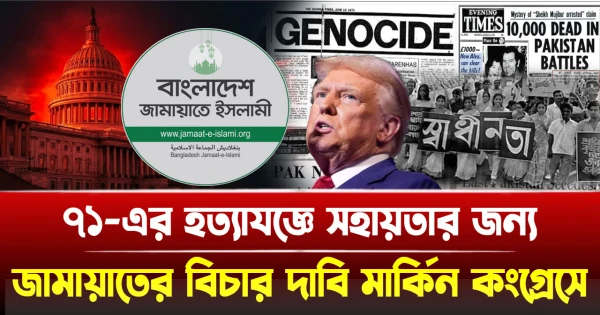 চোর পালালে বুদ্ধি বাড়ে, কিন্তু পাপ কখনো বাপকে ছাড়ে না! ৫৩ বছর পর একাত্তরের সেই জঘন্য ঘাতকদের কপালে শনির দশা নেমে এসেছে। যখন মনে হচ্ছিল বাংলাদেশের রাজপথে আবারো বুক ফুলিয়ে হাঁটবে একাত্তরের স্বাধীনতা বিরোধীরা, ঠিক তখনই ওয়াশিংটন থেকে এলো এক বজ্রপাত। মার্কিন কংগ্রেসে একাত্তরের সেই নারকীয় হত্যাযজ্ঞকে 'গণহত্যা' হিসেবে স্বীকৃতি দেওয়ার দাবি উঠেছে। আর লক্ষ্যবস্তু কে জানেন? সেই জামায়াতে ইসলামী! কীভাবে মার্কিন পার্লামেন্টে কোণঠাসা হতে যাচ্ছে বাংলাদেশের এই মৌলবাদী শক্তি।