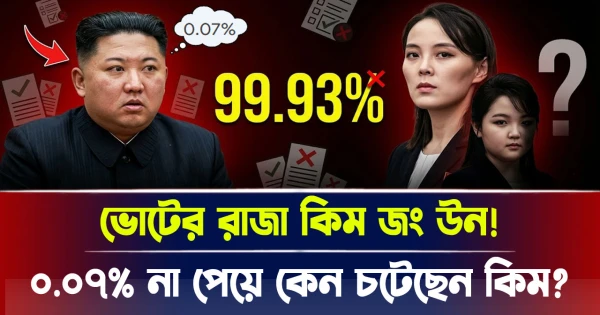 ভাবুন তো, আপনি একা দৌড়াচ্ছেন আর দৌড় শেষে ঘোষণা করা হলো—আপনি প্রথম হয়েছেন! অবাক হচ্ছেন? হওয়ারই কথা, কিন্তু উত্তর কোরিয়ার ডিক্টেটর কিম জং উনের কাছে এটাই হলো আসল ‘গণতন্ত্র’। সম্প্রতি সেখানে নির্বাচন হলো, আর কিম ভাই একাই পেয়েছেন ৯৯.৯৩ শতাংশ ভোট! কিন্তু আসল মজা সেখানে নয়, আসল মজা হলো সেই ০.০৭ শতাংশ মানুষের ওপর যারা কিমকে ‘না’ বলে দিয়েছেন। আজ বলবো কিমের সেই ‘ভুতুড়ে’ ভোটারদের গল্প যারা কিমের চোখের ঘুম কেড়ে নিয়েছে। ভিডিওটি শেষ পর্যন্ত দেখুন, কারণ শেষে থাকছে কিমের বাড়ির অন্দরমহলের ঝগড়ার খবর!